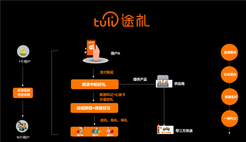 途礼是基于微信平台的旅游特产分享的电商平台,严选全国旅游城市代表性特产与伴手礼,创造性地融入“送礼、抢礼、回礼、转礼”等社交分享的互动新玩法,打通旅游目的地和微信购物渠道,让用户一起分享个地方性的特色好礼。农村老百姓可以将农特产品作为伴手礼在途礼平台进行售卖,获取农产品销售收益,将地方农产品销售到全国各地。