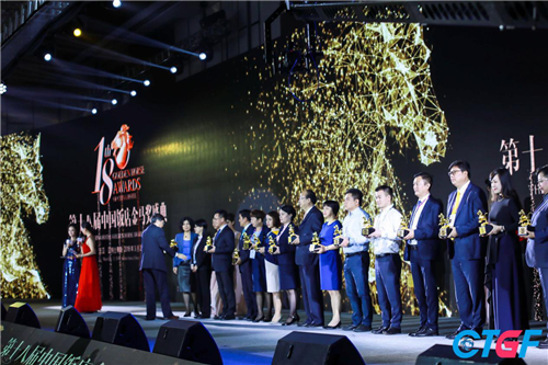 第十八届中国饭店金马奖:锦江之星旅馆有限公司CEO昝琳女士(右起第7位)上台领奖