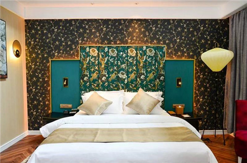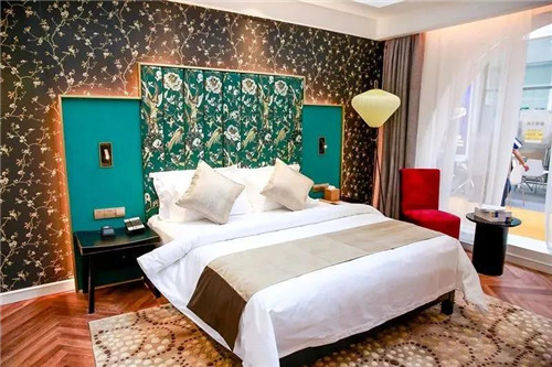 客房内大胆的色彩搭配、精致华美的装修风格,萃取新古典艺术美学和东方情怀为基调,构成一个融合古典与现代,传统与创新的和谐之美的客房艺术空间。让人无不体验到设计师深厚的功底,令现场迎来了看房潮。