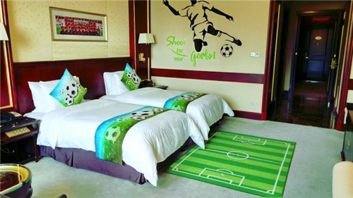 酒店借势恒大集团强大足球IP,设置足球主题客房、足球主题餐厅、足球主题活动等丰富的服务元素,源源不断为客人打造不一样的体验。