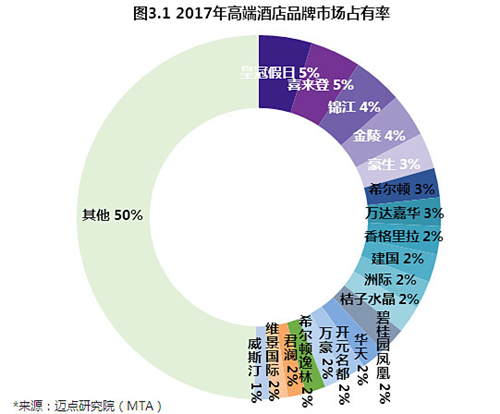 在经过30多年的锻造之后,中国本土酒店品牌正在强势崛起。据迈点研究院(MTA)携手TalkingData推出的《2017年度中国高端酒店市场大数据分析报告》显示,从目前国内市场上已有的高端酒店品牌来看,皇冠假日及喜来登的市场占有率相对领先,两个品牌均有5%的市占率。而作为本土酒店业的代表,锦江与金陵的市占率也不分上下。早前国际品牌备受推崇的阶段,目前国内与国际品牌间已接近平分秋色。而我国也已经形成首旅、锦江及华住三足鼎立的局势,在体量规模上可以与国际酒店品牌相媲美。在2016年hotel杂志每年一度的全球饭店集团排序中,找到了自己的位置,锦江集团位列第五,首旅如家集团位列第八,华住集团位列第九。