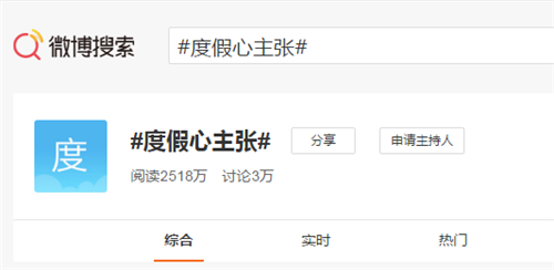 为扩大活动影响力,6月1-8日期间,碧桂园酒店集团联合近百家品牌在微博发起联合推广活动,以#度假心主张#、#玩转暑假,FUN肆一夏#为话题,号召粉丝分享难忘暑假经历,并送出包含酒店房券、旅行三件套在内的众多旅游礼包,助力粉丝开启精彩旅途。活动富有共鸣的话题、丰厚的奖品、诸多蓝V品牌的加入,瞬间引爆微博粉丝参与热情。统计数据显示,此次联动活动覆盖超过70余个品牌大V的1700万粉丝,活动总阅读量高达117万,并获得了超过3万的转发及点赞评论,助推#度假心主张#、#玩转暑假,FUN肆一夏#话题总曝光量突破2000万,成为微博旅游类热点话题。