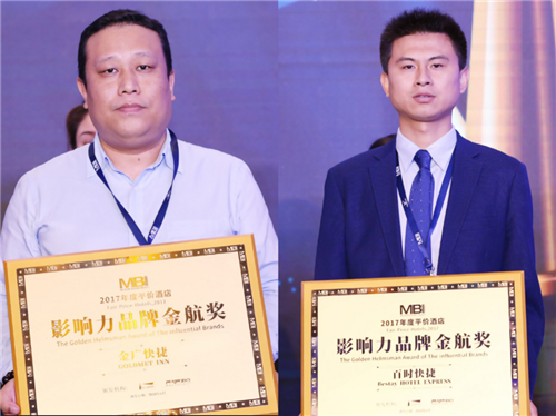 金广快捷/百时快捷两个品牌获得2017年度影响力平价酒店品牌十强 锦江之星旅馆有限公司北方分公司市场总监宋晶涛及市场营销部任超出席颁奖典礼授奖仪式