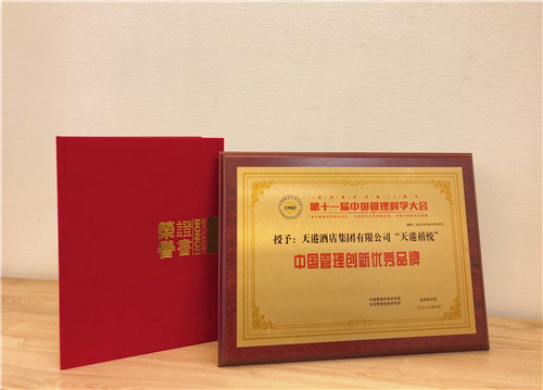 2018年6月23日,天港酒店集团旗下“天港禧悦”品牌在京再获殊荣。当天,由中国管理科学研究院企业管理创新研究所创办,发现杂社联合主办,管理观察杂志社特别支持,京WORK-北京码头提供智库支持的“第十一届中国管理科学大会“在北京会议中心隆重举行。在会上,“天港禧悦”品牌凭借其独特的中国式酒店管理模式,荣获“中国管理创新优秀品牌“奖项。来自全国各地的经济、管理专家学者,管理科学研究工作者,企业家等共计600余人参加了本次盛会。