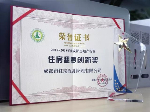 成都红璞凭借在2017年取得的优异成绩,与不断的创新突破,荣获2017-2018年度成都房地产行业“住房租赁创新奖”。