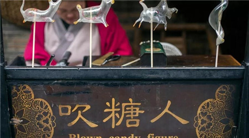 吹糖,传统民间手工艺品之一,以麦芽糖为原料,将糖加热,使其变软,调入红、蓝、黑等色素,根据需要可以调出数十种不同的颜色,然后借助剪刀、小梳、小篾刀等工具及竹片、弹簧、石膏粉等辅助材料,经由艺人吹、拉、搓、扯、捏、压、剪等技艺塑制成形。2008年,列入第二批国家级非物质文化遗产名录。