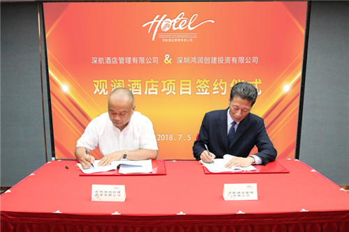 2018年7月5日, 深航酒店管理公司与深圳鸿润创建投资有限公司就其投资兴建的观澜酒店项目签订工程技术服务及全权委托管理合同并举行签约仪式。当天,深圳鸿润创建投资有限公司董事长郑楚璋先生、董事陈贤波先生、项目总经理王劲松先生,深航酒店管理公司总经理黄俭先生、副总经理郭广军先生及各部门主要负责人一同出席并见证了此次签约仪式。