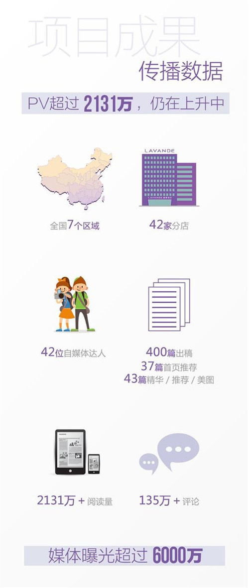 除此之外,麗枫通过多次举办联动线下和线上的营销活动激活官方自媒体平台的粉丝,比如麗枫在2016年举办的“绚麗枫景在路上”活动,采用了全民营销手段,从300多名自媒体中招募42位KOL参与全国8大区域的麗枫酒店体验,最终实现活动线上总浏览量达2131万+的好成绩。