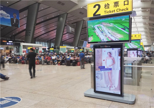 (2018年7月,麗枫酒店创意海报投放在全国7个主要城市高铁站,图为北京南站)