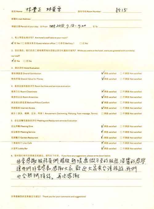 获得了下榻贵宾的一致美誉