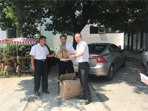 一瓶清凉的风油精、一条擦汗的毛巾、还有其他的解暑降温的产品,集团公司董事长朱巍为在高温天气中坚守在一线工作的职工送去组织的关怀。