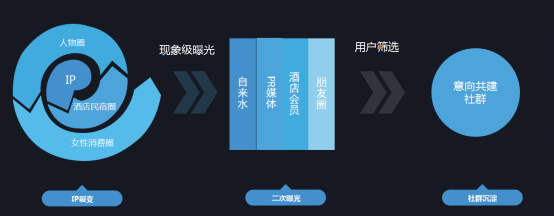 采用了以下几个核心逻辑来快速锁定自身对目标的有认知感的用户:第一,用IP裂变的玩法,对人物本身的塑造能力要非常强,也就是说今天王功权的付出想做怎样的事情。所以对他的IP打造是裂变过程的中心轴,要把这个主心轴站稳。第二个他自身的朋友圈会成为传播过程中的自来水,首先是酒店的会员,其次是很多媒体。通过平台找到的用户,众筹的300个人就是通过平台找到的这个平台,以社群的方式做第三轮传播。