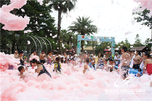 在夏日亲水嘉年华活动期间,各酒店纷纷推出了丰富的水上主题活动,既有“魔幻泡泡大作战”等互动活动,邀请大小朋友进入梦幻泡沫世界,尽情享受戏水追逐的乐趣,亦不乏高颜值网红火烈鸟主题水上派对,搬来火遍全球的粉色火烈鸟泳圈,让泳池秒变自拍胜地。不管是家庭游客,还是爱美小清新,都能在这里找到打开夏日的正确方式。而清凉派对又怎能少得了美食?活动期间,各酒店为宾客精心呈现夏日美食精选,高明酒店环球美食之旅、张家界酒店香气诱人的烧烤派对、台山酒店各式甜点与啤酒——都在致力让清池与美食,成为夏日最美好的邂逅。