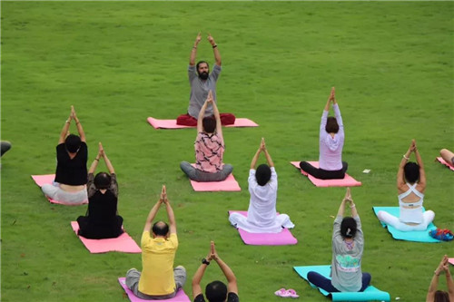 酒店特邀玛雅瑜伽学院的Dr. Ranjay博士作为主讲人,为来宾带来一场关于“BREATH & LIFE”的主题养生讲座,更是邀请来宾与国际瑜伽日全球形象代言人的瑜珈大师Dr. Ranjay在酒店的天然氧吧——户外大草坪一起体验“落日瑜珈”。