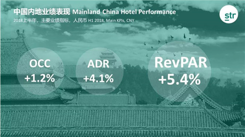 中国内地酒店市场经历了之前的几年的跌宕起伏后,终于在2017年达成入住率和平均房价的双向增长,使得每间可售房收入达到自2012年以来最高水平。截至2018年上半年,中国内地酒店业持续走好,尽管入住率在到达峰值时往往会放缓增长速度(+1.2%),但在持续高涨的市场需求的带动下,动态定价策略更有效地发挥其自身价值,使得每间可售房收入相比去年同期仍有5.4%的提高。