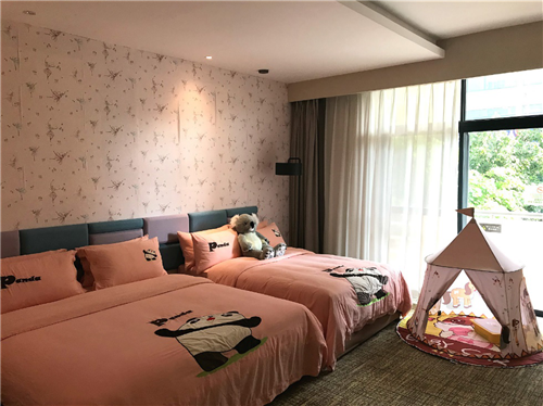 亲子房的增设,也是根据市场导向需求,据统计入住酒店的客户约有18%是亲子客户出行,特别是在法定节假日的时候更是高峰。现在酒店的亲子房几乎天天订满,深受客人欢迎,也让一直以商务客户为主的机场酒店多了一份温馨,同时更好的提高酒店收益。