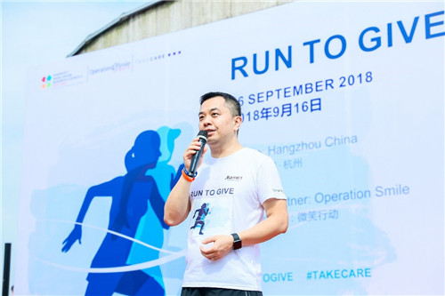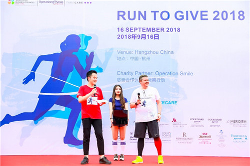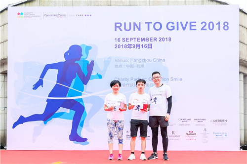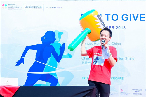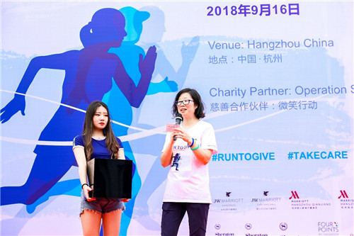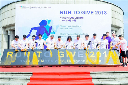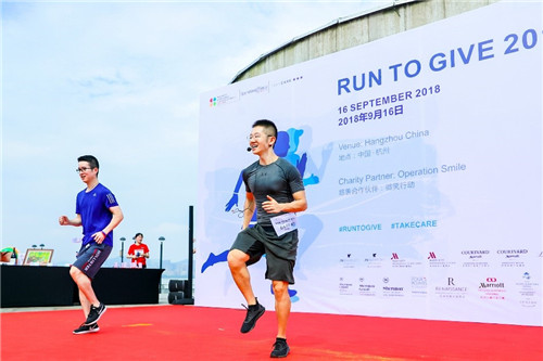 杭州,中国浙江,2018年9月16日,“Run to Give”万豪国际集团华东区商务理事会浙江与安徽分会携手“微笑行动”在杭州滨江彩虹跑道携爱开跑,以实际行动支持国际公益组织“微笑行动”,为更多贫困唇腭裂患儿创造义诊机会,让更多孩子绽放微笑。