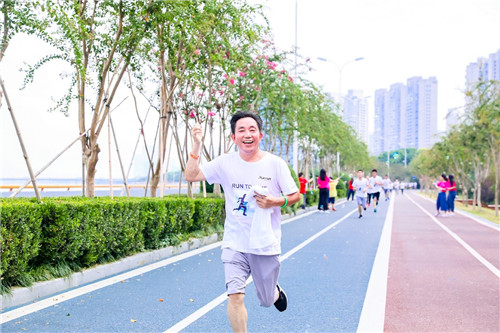 拍卖结束后,健身教练带领慈善跑参赛人员进行赛前热身,随着一声枪响,慈善助跑正式开始。运动员们激情开跑,向终点冲刺。