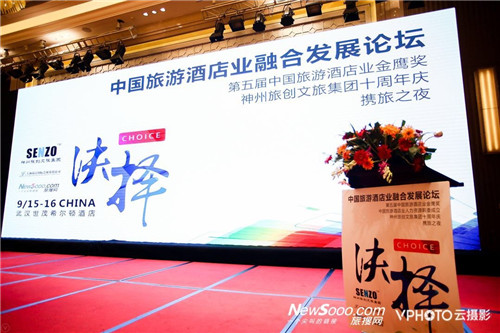 2018年9月16日,中国旅游酒店业融合发展论坛暨第五届中国旅游酒店业金鹰奖盛典在武汉世茂希尔顿酒店举行,各省市旅业政府领导、全国五十多家旅游酒店业业界翘楚、专家学者济济一堂,共襄盛会。中青旅山水酒店集团总裁助理郑权代表集团出席论坛。