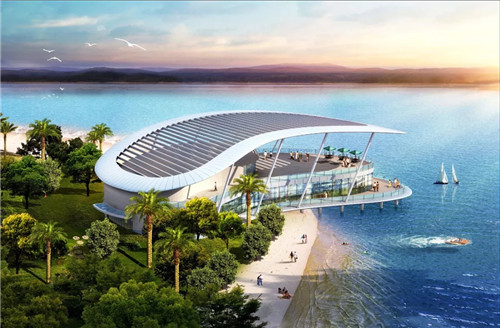 及临水远眺的露天观景台,还有千万级的法国亚诺豪华游艇在此停靠,