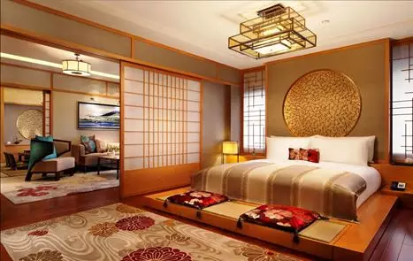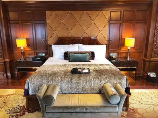 忘不了中国套房里的绝伦设计。瓷器、八角门框、小狮子、灯笼、镂空铜制装饰品与刺绣床品。即便是为了熄灭烟蒂用以浇水的小水壶,也做成了一位作揖的人偶,精巧绝伦。