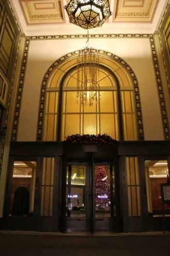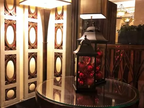 忘不了那扇黄铜旋转门。恰逢圣诞节前夕,红金银三色彩球点缀的门牌之下,躲在黄铜旋转门之后,是迫不及待想要拥抱我的暖黄灯光。