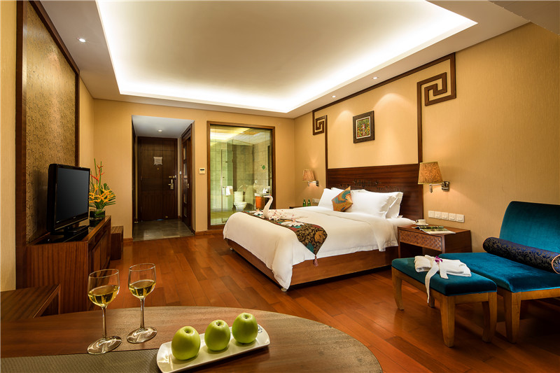来到客房走廊,眼前所见,是海南特色黎苗风情,行走在其中,仿佛整个世界都安静下来,让人更快进入静怡的休憩状态中。