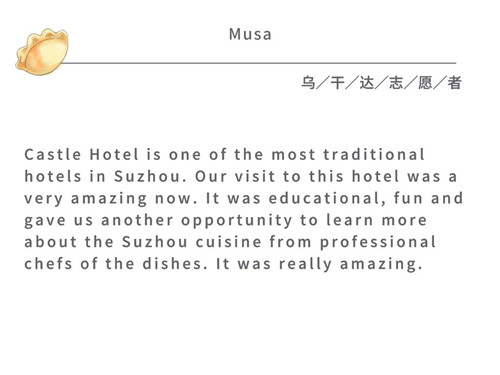 六月中旬,苏州地面优质自媒体频道吃货老板娘联合AIESEC和西交利物浦大学的志愿者们共同策划了一场中外美食交流活动,精选苏州比较有苏式特色的6家店,让中外小伙伴们到店一日体验,了解和学习制作苏州美食。来自世界各地的志愿者们的第一站就来到了位于苏州姑苏区三香路上书香酒店集团旗下的主力品牌苏州胥城大厦酒店。