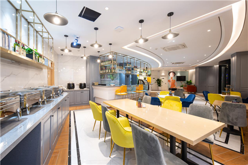 酒店大堂不再只是办理入住登记的地方,而是以灵动空间呈现,增设有休闲区、水吧、自助餐区等,融合了人文艺术、轻社交、健康餐饮(含水吧、自助餐区等)以及生活美学的多功能“城市会客厅”。在这里,可以享用咖啡下午茶,可以社交、可以办公,可以举办多种形式的文创活动,带给客人更多“精致时尚生活”的旅居体验。