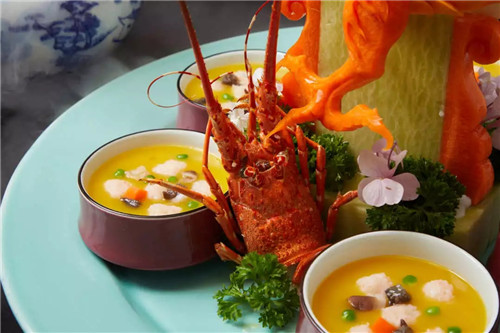 龙游四海,凤舞九天。选用的小青龙和辽参都是对食客极佳之食材,整道菜看上去便是玉盘珍馐,让人垂涎三尺;咬在嘴里口感饱满,让人忍不住一颗接一颗地吃下去,一下子就光盘啦。