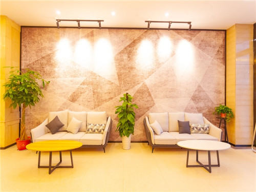 咖啡色为主调的大厅,辅以明快亮丽的彩色装置艺术,文艺感与时尚感完美融合,。灵感源自客人旅行箱的回型前台,无不给人一种简约、洒脱之感。