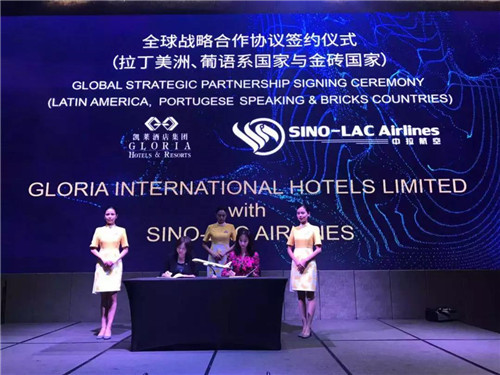 第三场签约仪式为凯莱国际酒店集团与中拉航空有限公司签署全球战略合作协议。
