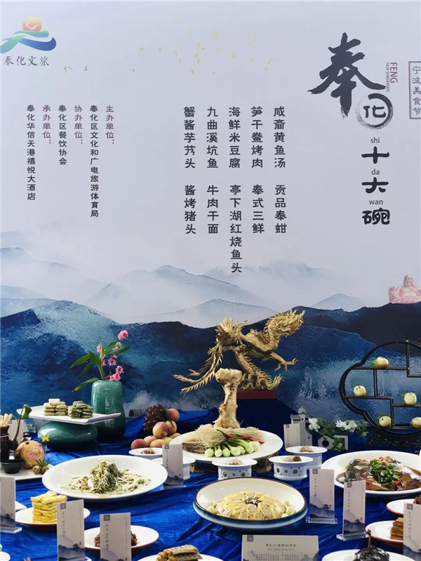 这场由宁波文化广电旅游局、宁波商务局与鄞州区人民政府联合主办的旅游美食文化交流大会,还特别设置了“甬菜百碗·海鲜风味”的展示,让宁波各县区的美食文化在这里可以得到交流宣传,尽情散发魅力。奉化天港禧悦酒店作为奉化区的美食“代言人”,将奉化地道美食带到了现场。