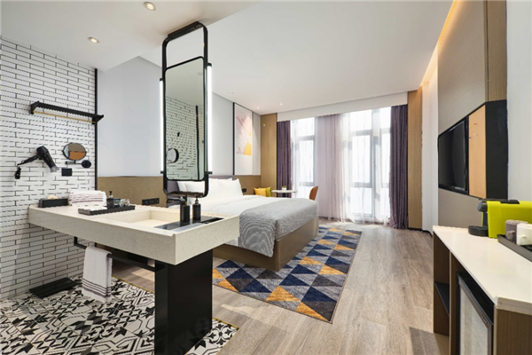 为保证宾客舒适的体感而定制化超大床垫、高织棉纺床品、多种类型的枕头选择、柔软亲肤的浴巾浴袍,配以柔和灯光、静谧环境,为宾客营造深度睡眠体验。酒店每间客房配备智能互动电视,宾客可使用手机投屏,轻松体验影音互动乐趣;在房间通过扫描房间放置的“机器人配送”二维码,还可体验由萌趣可爱的机器人“华仔”即时速递多种物品。