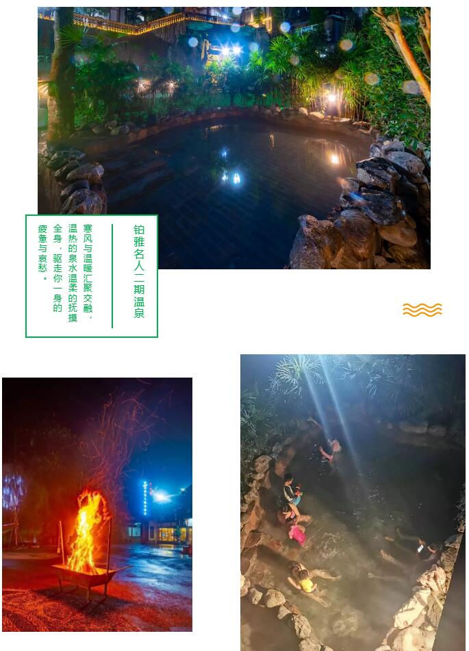 山中度假,怎么少得了美食相伴,青城山铂雅名人温泉美食度假酒店渠引青城山中天然泉水,由星级大厨为你独家配料打造露天泉水火锅;药膳滋补系列;青城山腊肉野菜系列;独家烧烤:特色烤全羊;烤乳猪;烤全鸡;特色篝火晚会等等........