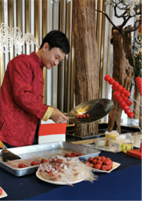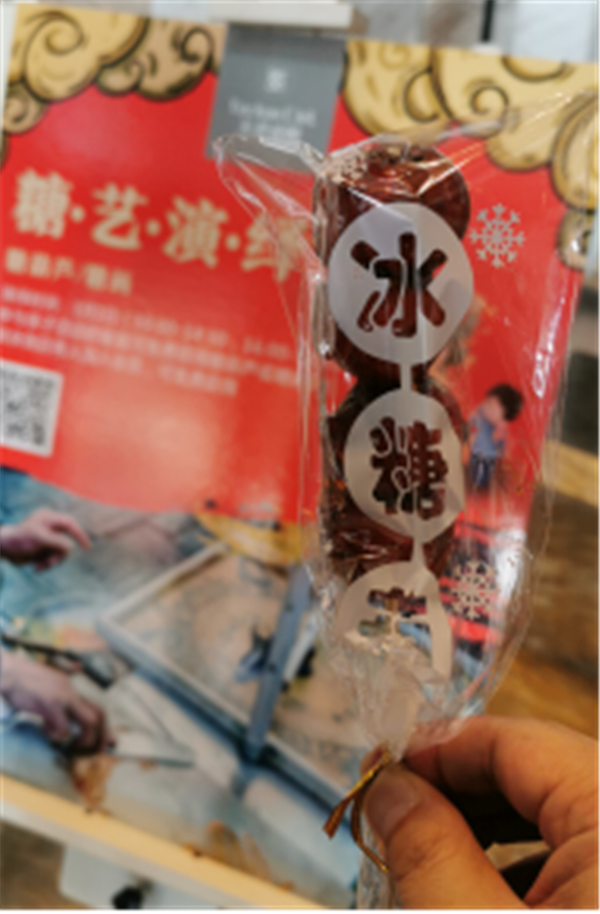 现场制作的糖葫芦,颜色鲜艳,糖香袭人。
