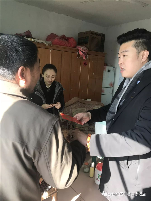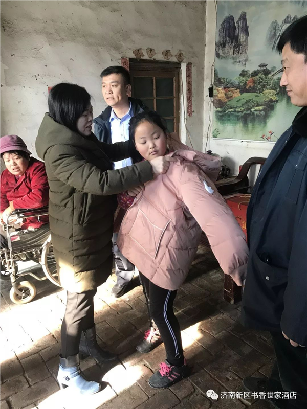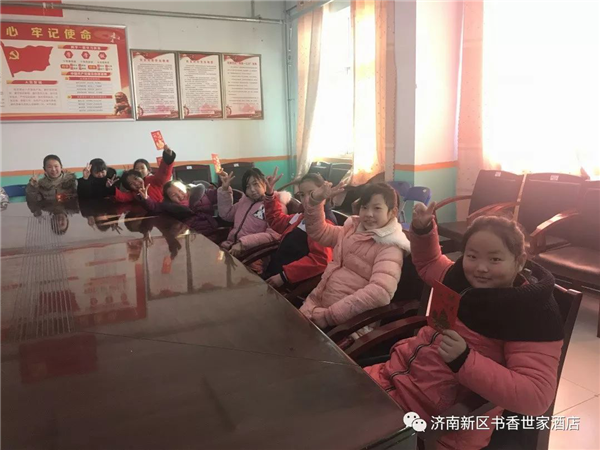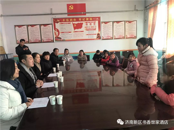2020年1月9日,济南书香世家酒店在王旭总经理的带领下再次来到商河县沙河乡,为定点扶持的春蕾女童及其家庭送来连续8年的新年慰问与祝福。