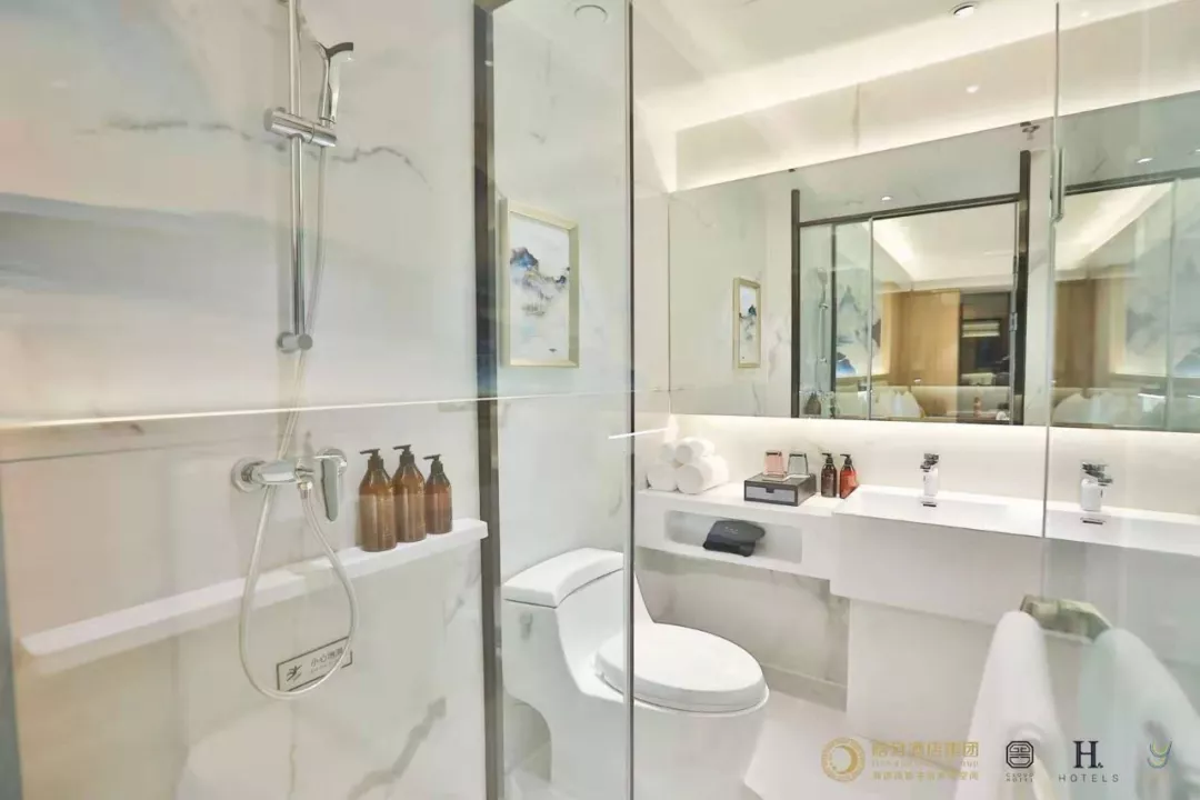 • 聚焦品质与细节,客房内的卫生间升级为新型装配式成品卫生间,洗手台一次模压成型;