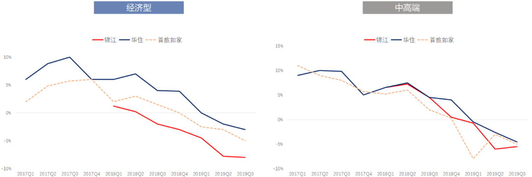 2017-2019Q3 锦江、华住、首旅如家RevPAR增速