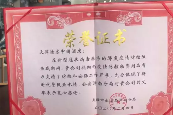 这本已经做好了他个人能做的,但是随后在得知防控疫情物资紧缺的时候,他主动走上了捐资捐物的公益之路。依靠自己的人脉和资金,他四处筹措物资,并以酒店名义对当地公安、消防、卫生等多个在防控疫情第一线的有关部门,进行了物资捐赠。