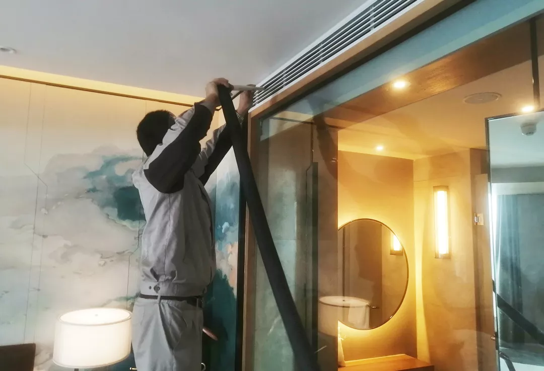 成都温江皇冠假日酒店针对空调系统的防疫工作。
