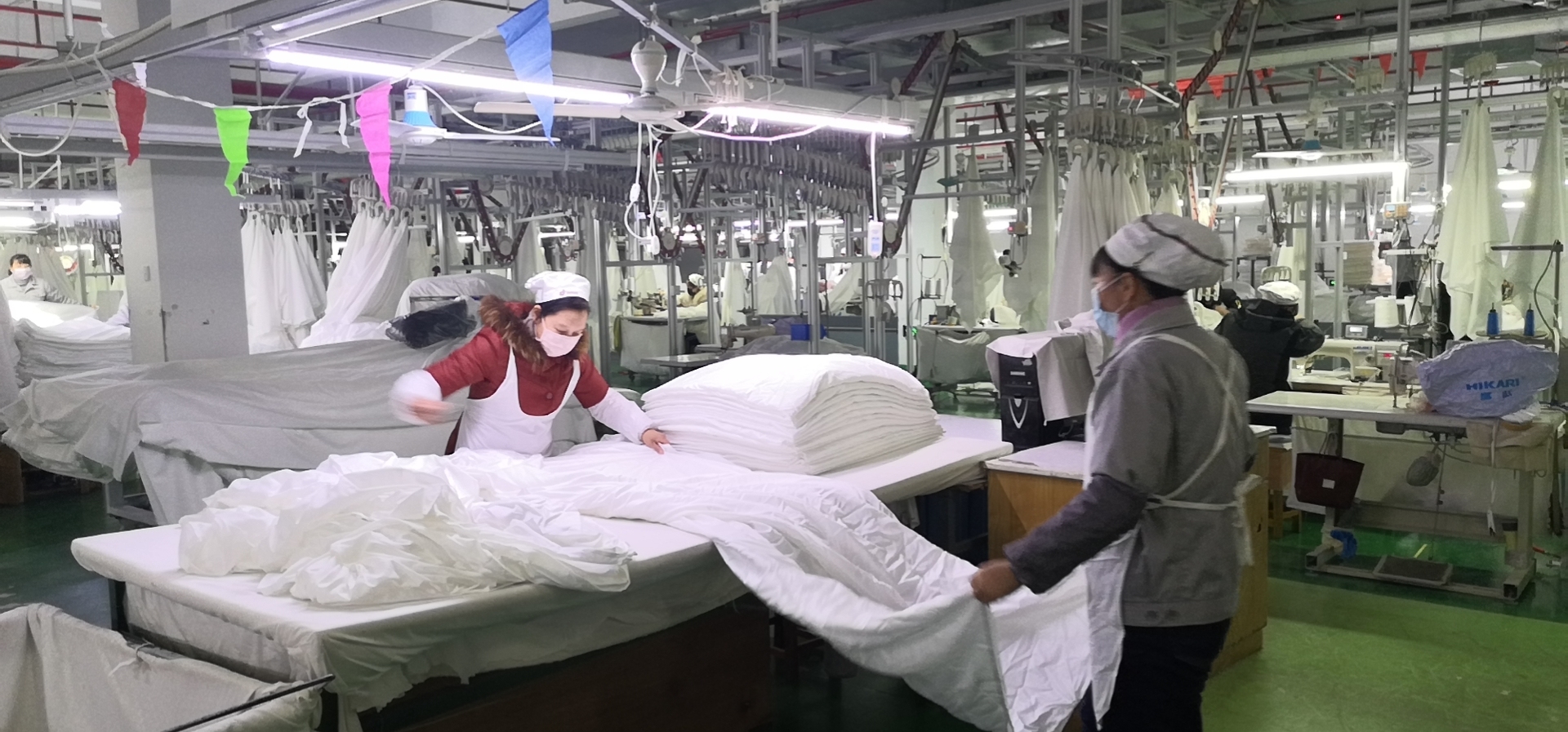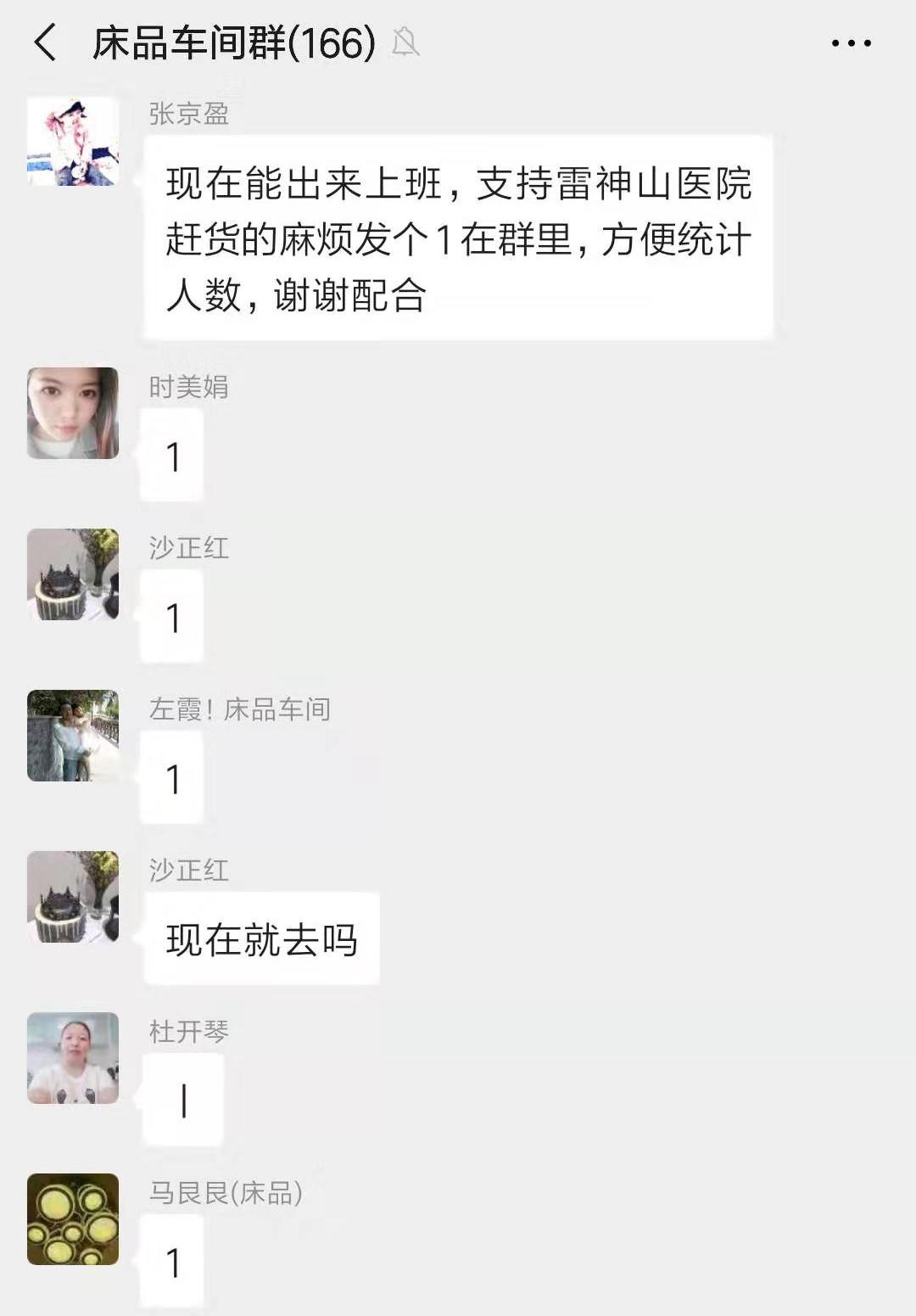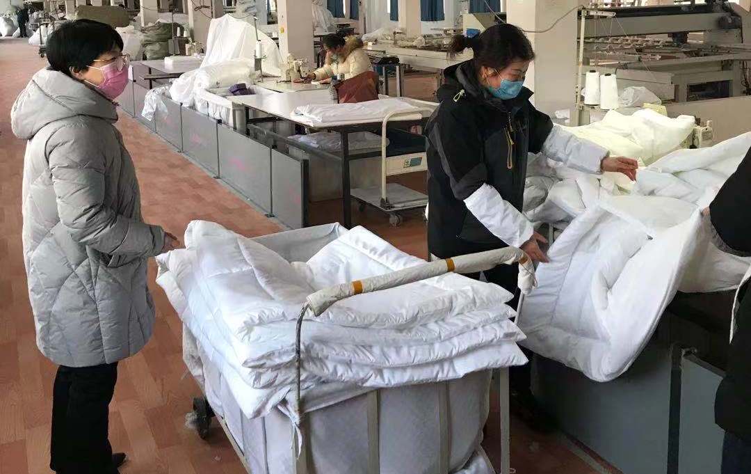 在办理相关审批手续后,生产副总经理朱晓丽、床品车间经理穆久倩立即开展了床品车间复工的组织工作。床品车间员工在收到赶工通知后,积极响应,争相报名,火速赶往公司投入战斗!