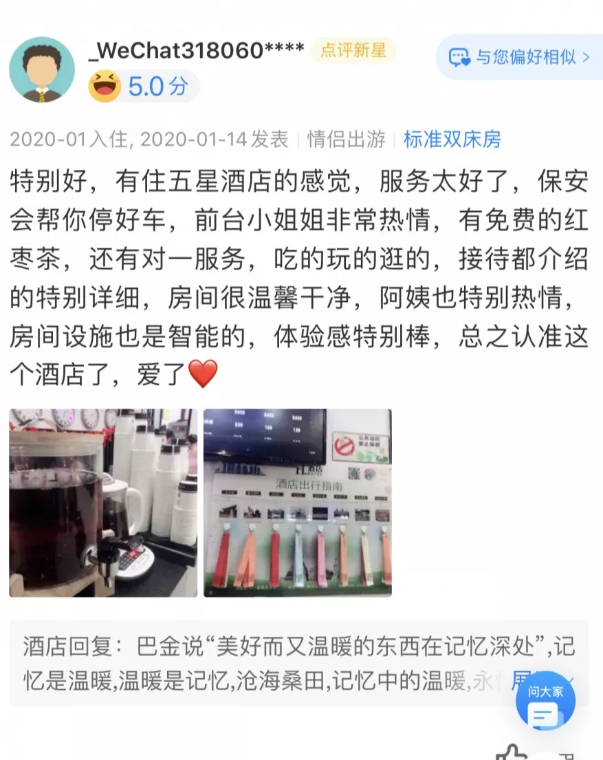 河南许昌六一路H酒店,目前是晗月集团在疫情高发期为数不多的在营酒店,141间客房入住率100%以上,每天营业额高达3.5万多元,其中商品售卖就达7千多元,疫情防护等级达到医院水平,这样的逆势而上在整个酒店行业都很少见。