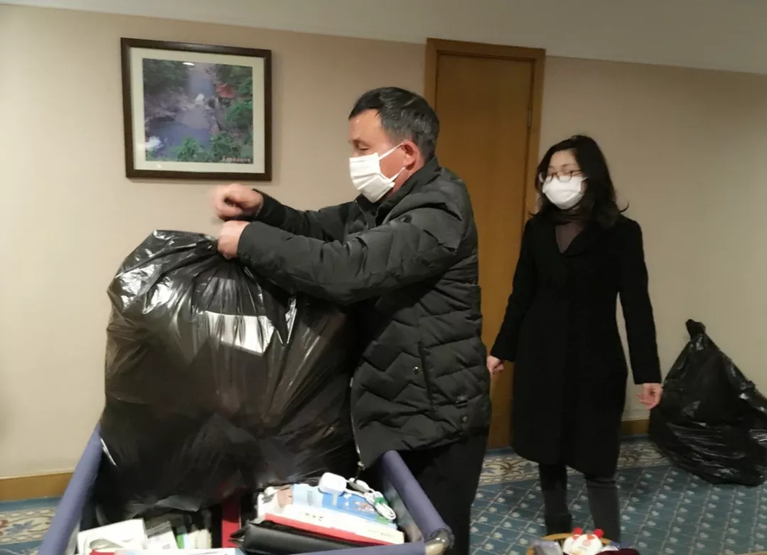 1月31日,同城之茂银都酒店接到乌鲁木齐市经开区政府通知, 征用酒店作为2月1日第一批隔离人员的接待酒店。接待人员均从欧洲返程回国,共122人,其中湖北籍6人、外宾2人。由于飞机上有发热人员,酒店高度重视,总经理贾存虎紧急召开动员会,协调各部门做好对应准备,客房部负责对酒店所有角落全面消毒,餐饮部负责为隔离人员及时送餐,总计5名员工在隔离期全程为隔离人员提供全面保障。