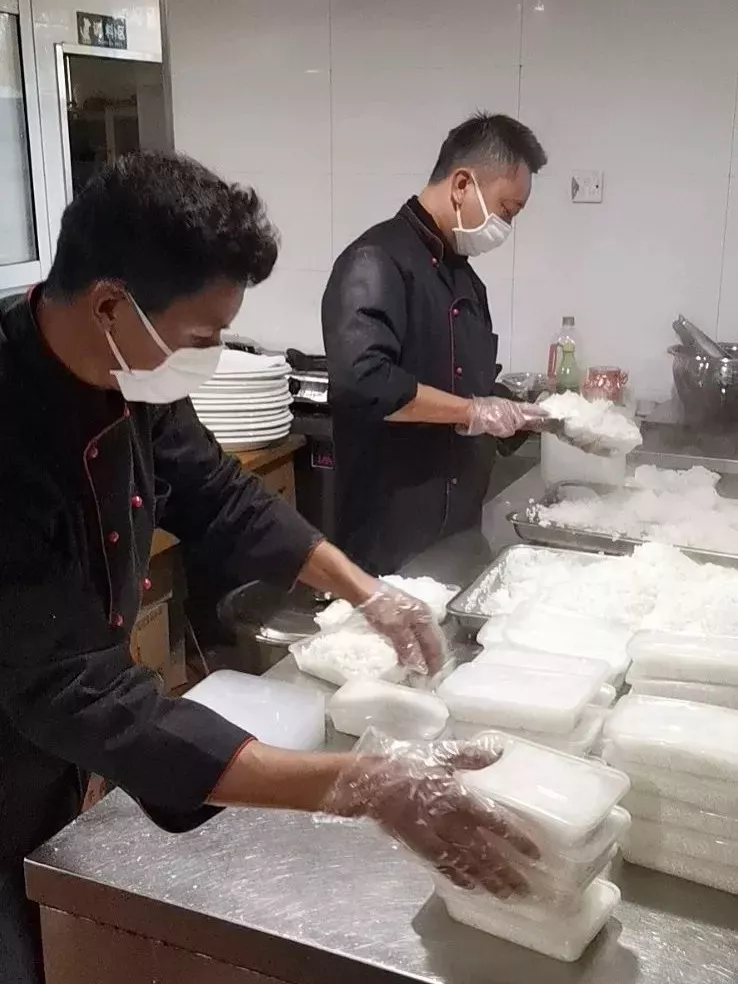 隔离人员的住宿已经保证,一日三餐同样不可或缺。酒店餐饮部留守员工放弃春节休假和家人团聚,只为在住的疫情隔离人员及时提供早、中、晚三餐的餐食保障。