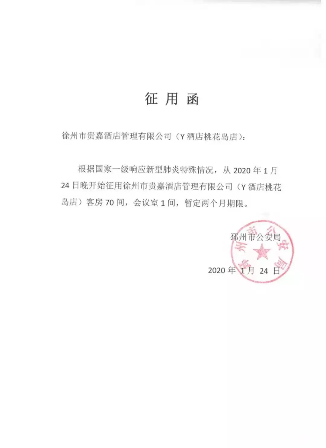 晗月酒店集团旗下Y酒店.邳州店,为了应对新型肺炎特殊情况,主动请缨 ,作为当地应对武汉返乡人员留观专用酒店。