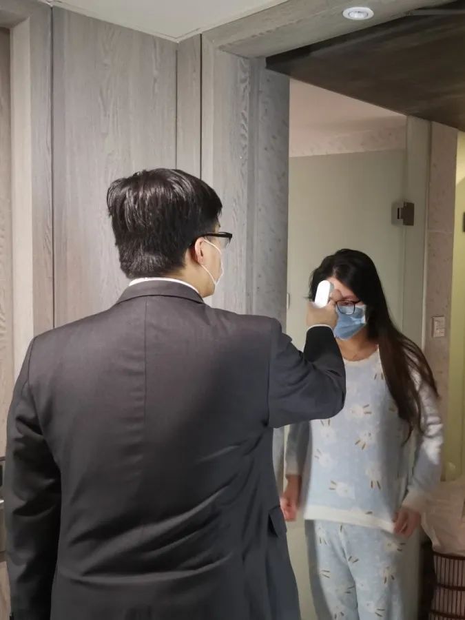 酒店出于疫情期间大爱无疆的对客关怀,收留了无家可归的张女士母女入住至今,每日定时做体温记录,提供消毒棉片及消毒药水,让客人感到安心,在配合所在物业、防疫部门做好每天两小时的检查外,酒店还为母女俩提供一日三餐的送餐工作,为了减轻客人心理压力,前台接待、酒店管理层主动加客人微信,让客人了解我们开展的工作,每天简单的一句问候,就会让客人感动一天,让客人和我们一起抗击疫情。