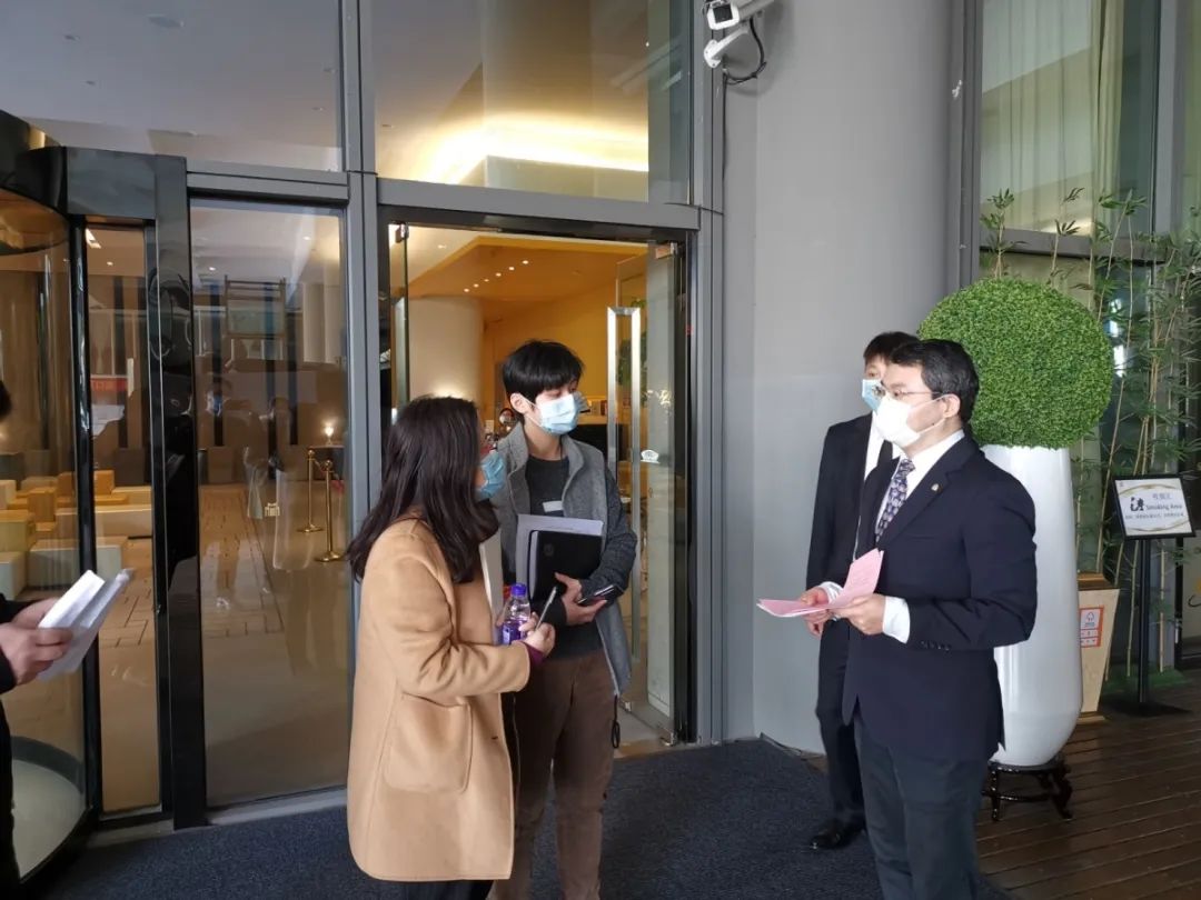 2月25日上午9点杭州江干区领导、彭埠街道领导、城市管理防疫部门,在属地复工第一天,就把锦江都城杭州火车东站酒店作为首家参观巡查酒店,在巡查酒店时,属地行政领导们对酒店疫情期间所做的规范防控工作表示肯定,关心的询问酒店急需物资存量、员工身体健康状况,是否需要属地帮助等问题,酒店总经理一一做了解答。酒店总经理也将近期的防疫工作向领导们做了汇报,领导们希望酒店继续加油,一起共克疫情难关,做好复工复产工作。酒店为感谢区领导莅临,送上酒店在疫情期间新出品的打包早餐及品牌独有的消毒棉片。