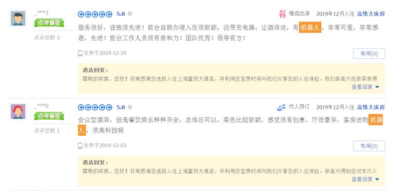 而且,使用机器人使酒店的OTA点评分数有了明显的提高,有的客人觉得机器人更能保护隐私,有的人认为使用机器人的酒店更高端、更有科技感,机器人也很可爱,能提升住宿体验。