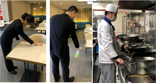 为了能成为第一波开门迎客的酒店,苏州书香府邸酒店·平江府、苏州山塘书香府邸酒店、胥城大厦做足了准备。在硬件方面,集团安全部前期进行酒店线上培训,酒店工程部连合餐饮后厨对各个厨房设备、餐厅设备进行TPM维护保养,确保堂食营业期间的用餐安全;酒店采购部也在原来的基础上,将食材原料来源表完善,保证食材来源有追踪,食材用量有记录;酒店餐厅后厨等所有区域,增加消毒频次,酒店返岗员工主动出示健康码,并集中公示在堂食区域门口,从后厨到餐厅,厨师、传菜员、服务员等所有的员工均带好口罩、手套,严密防护,切断任何人为可能传播的渠道方式。餐厅桌椅严格摆放,一人一位,固定就餐距离。所有到店食客,在酒店大堂入口处均需进行简单的体温检测,到店人员信息登记,健康码展示等环节,才被允许进店就餐。